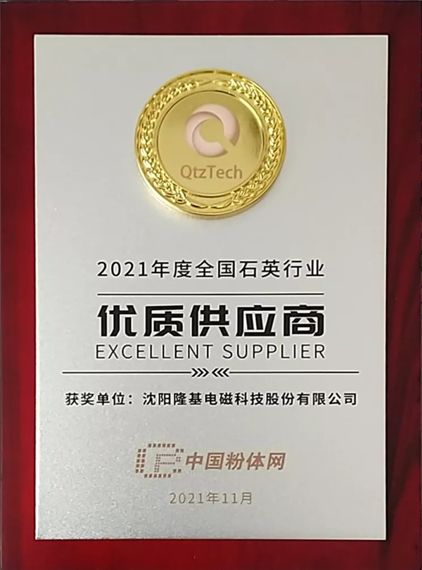 11月18日晚,2021全国石英大会颁奖典礼隆重举行,隆基电磁获得“2021年度全国石英行业优质供应商”称号。